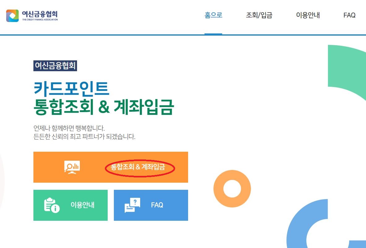 여신금융협회 카드포인트 통합조회 및 계좌입금 사이트에 접속합니다