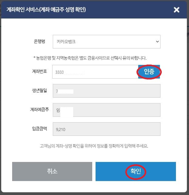 입금받을 본인의 거래은행 계좌번호 입력후 인증 버튼 그리고 확인