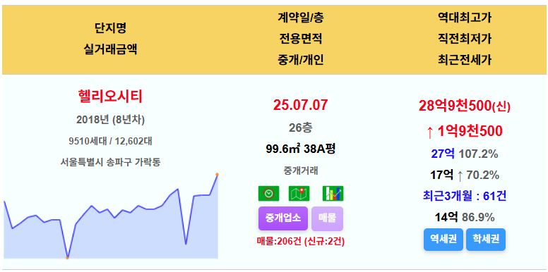 송파구 헬리오시티 38평 28.95억 신고가
